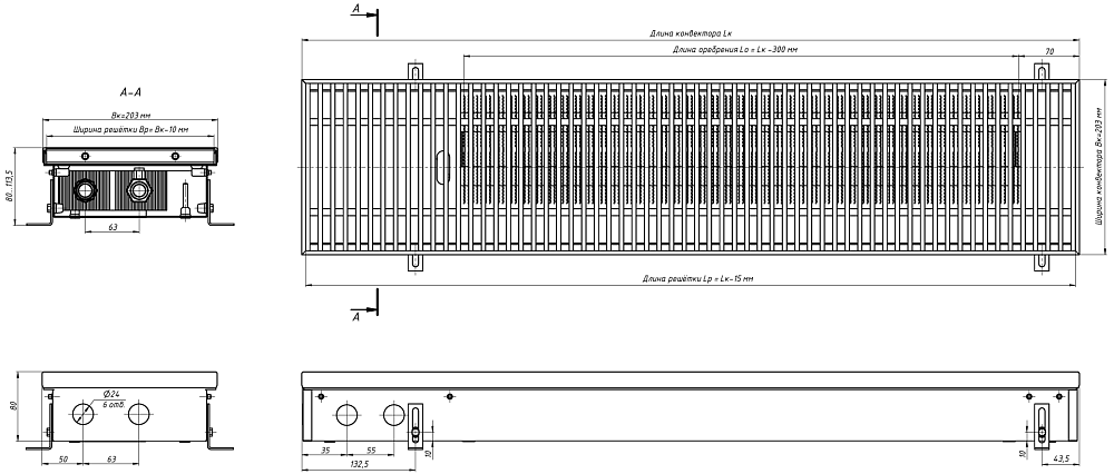 Цена конвектора указана без стоимости решетки. Необходимый материал решетки (алюминий или дерево) уточняйте у менеджера!
