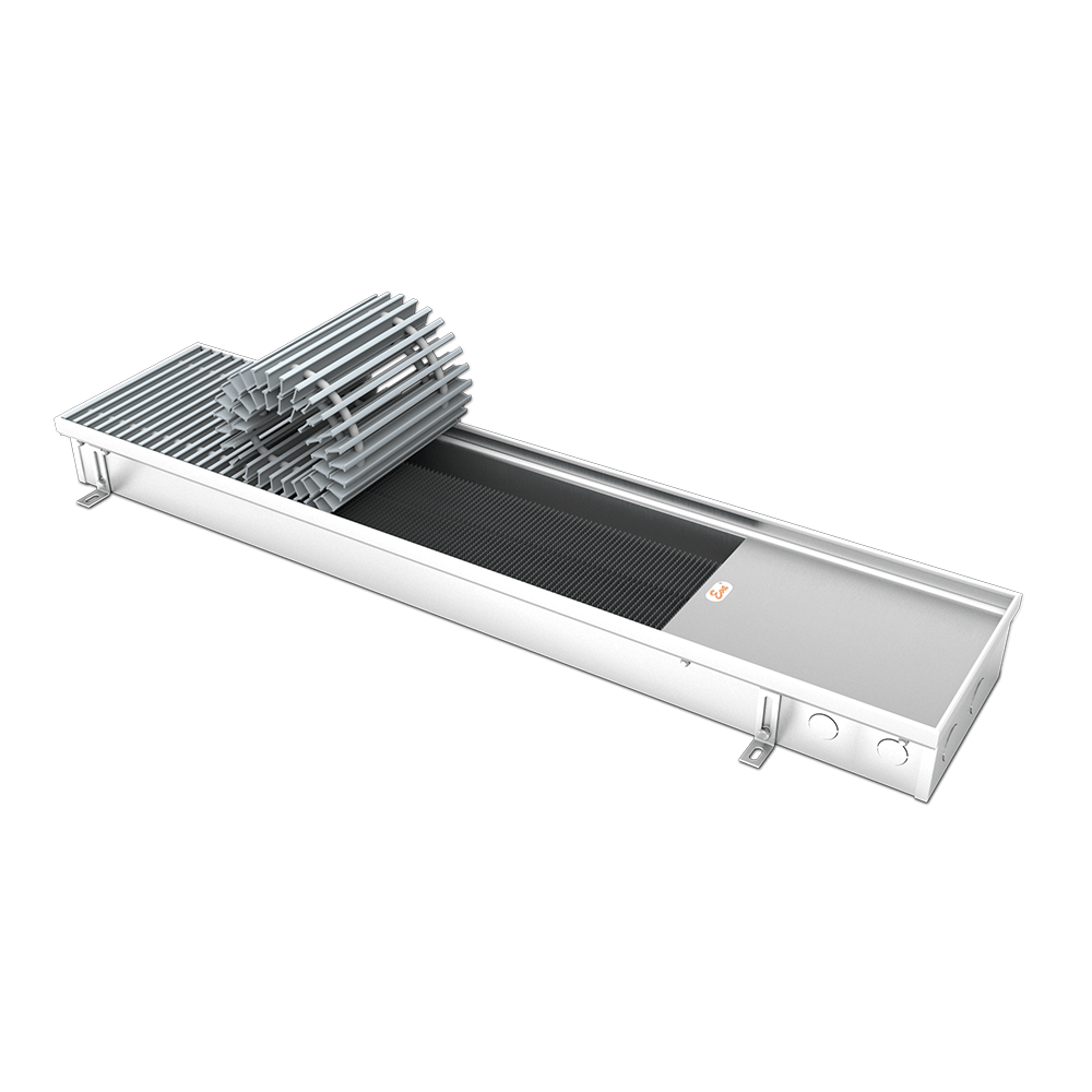 Встраиваемый в пол конвектор Eva K с естественной конвекцией - это отопительный прибор, в котором установлен медно-алюминиевый теплообменник, тепло от которого передаётся в отапливаемое помещение путём естественной конвекции.