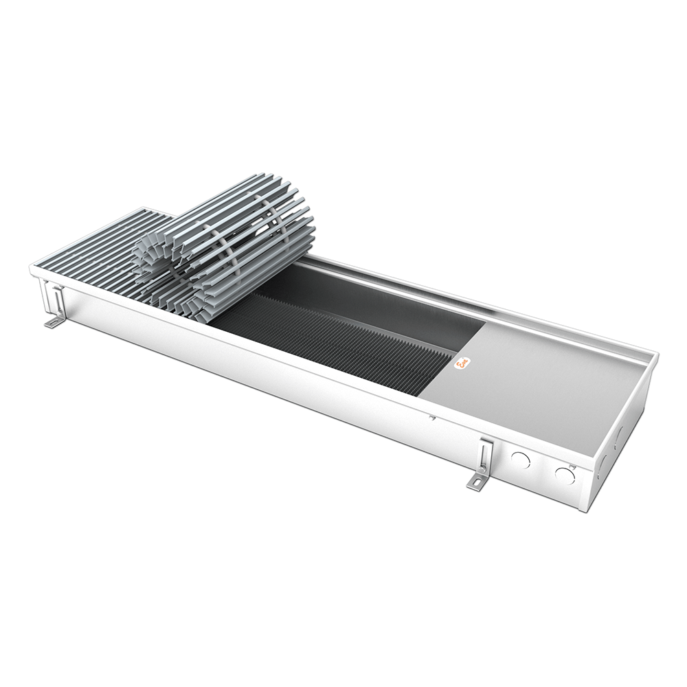 Встраиваемый в пол конвектор Eva K с естественной конвекцией - это отопительный прибор, в котором установлен медно-алюминиевый теплообменник, тепло от которого передаётся в отапливаемое помещение путём естественной конвекции.