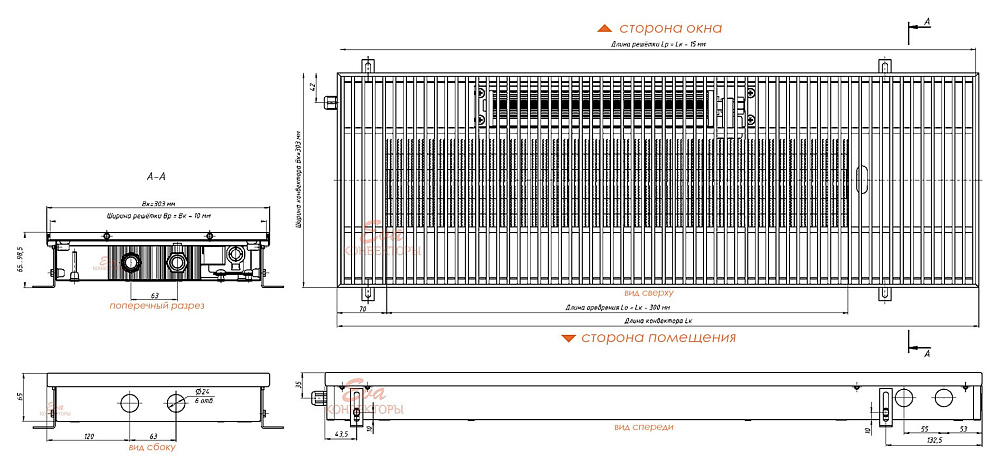 Цена конвектора указана без стоимости решетки. Необходимый материал решетки (алюминий или дерево) уточняйте у менеджера!