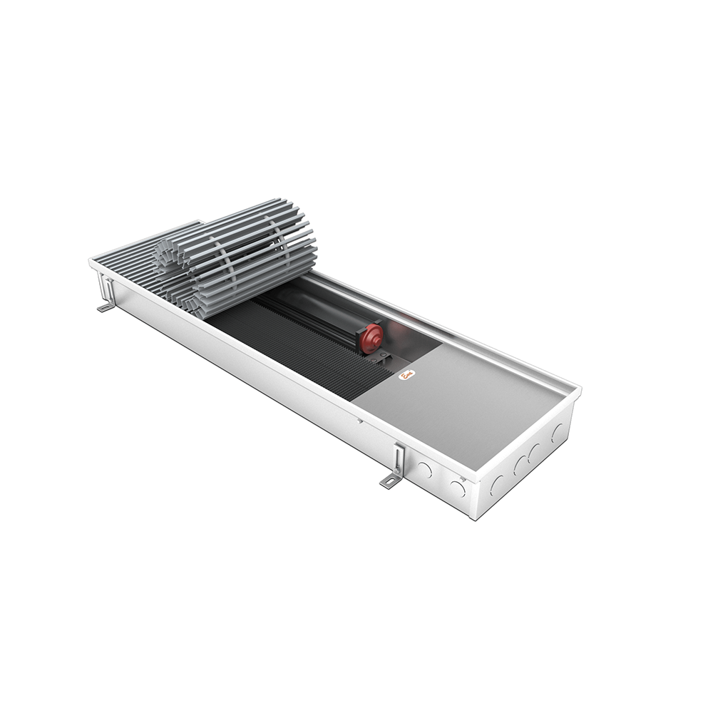 Встраиваемый в пол конвектор Eva KB с принудительной конвекцией - отопительный прибор, в котором установлен медно-алюминиевый теплообменник и тангенциальный вентилятор, тепло от которого передаётся в отапливаемое помещение путём естественной (при выключенном вентиляторе), и принудительной (при включённом вентиляторе) конвекции.