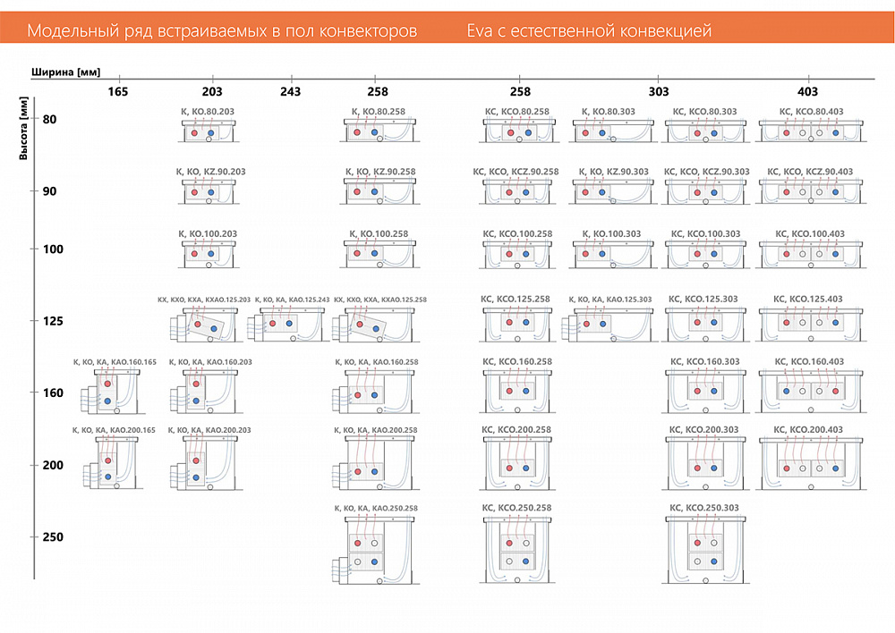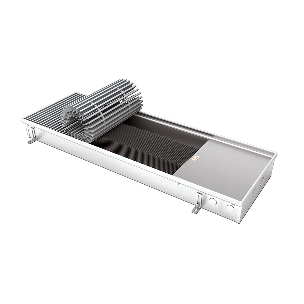 Встраиваемый в пол конвектор Eva KC с естественной конвекцией - это отопительный прибор, в котором установлен медно-алюминиевый теплообменник, расположенный по центру конвектора, тепло от которого передаётся в отапливаемое помещение путём естественной конвекции. В моделях