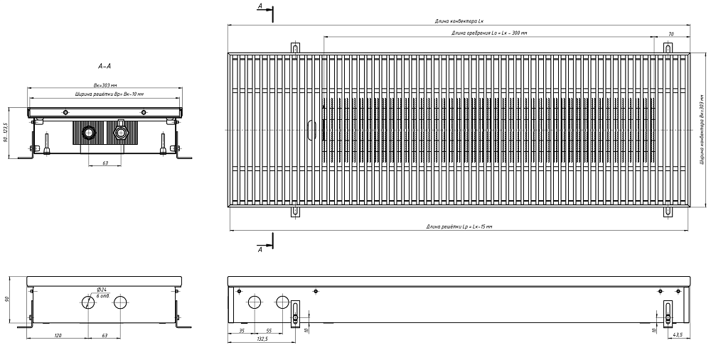 Цена конвектора указана без стоимости решетки. Необходимый материал решетки (алюминий или дерево) уточняйте у менеджера!