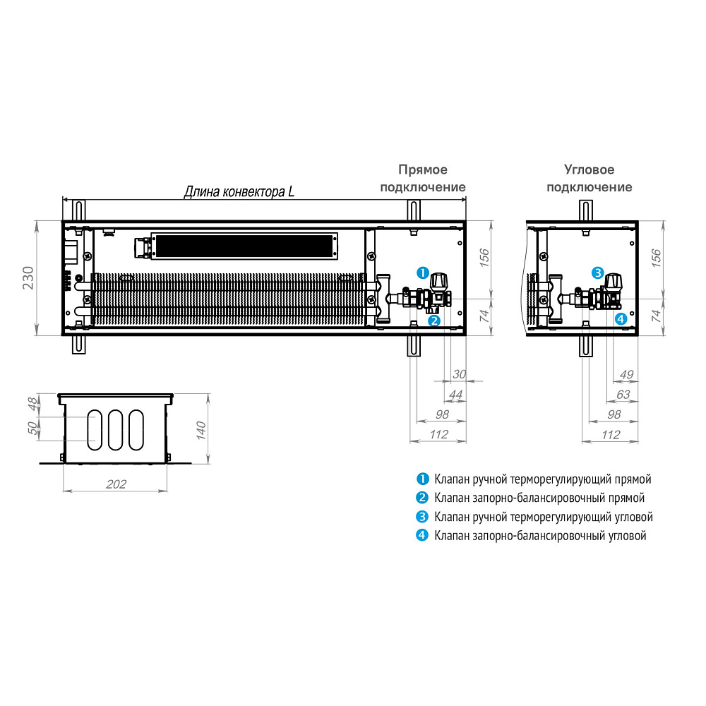 • Тип конвектора внутрипольный