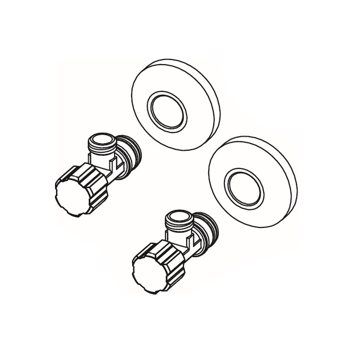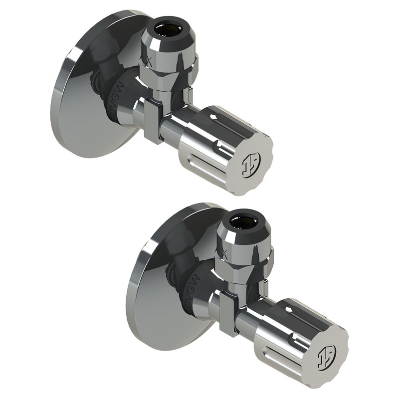 Хромированные угловые вентили (1/2" х 3/8") с настенными розетками, комплект 2 шт.