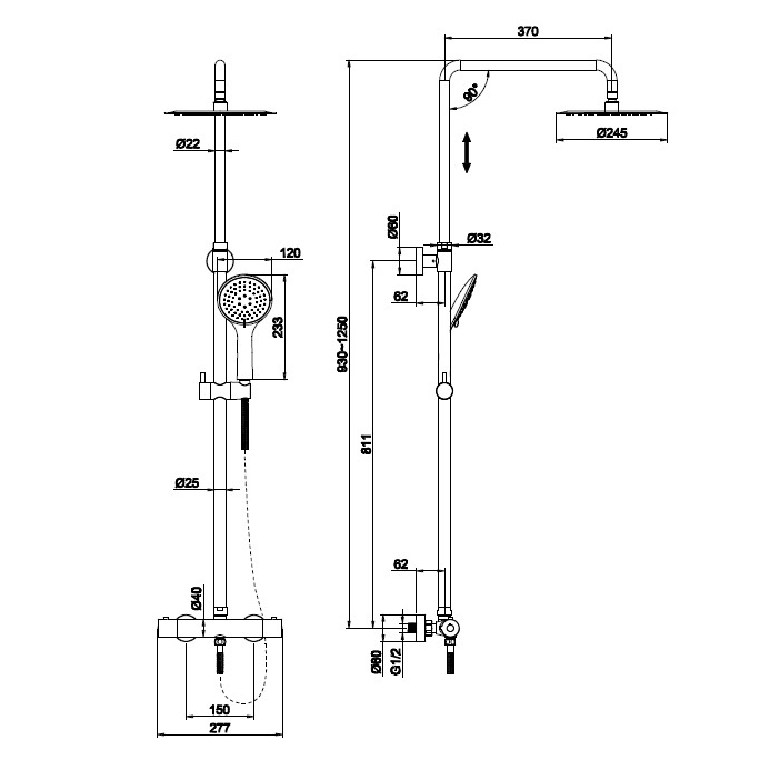 Размер верхнего душа245 мм