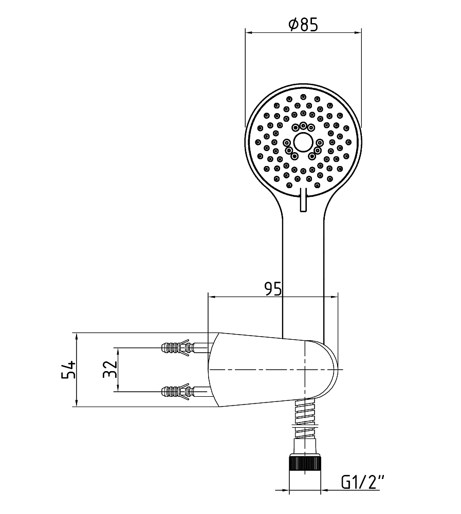 Размер ручного душа85 мм