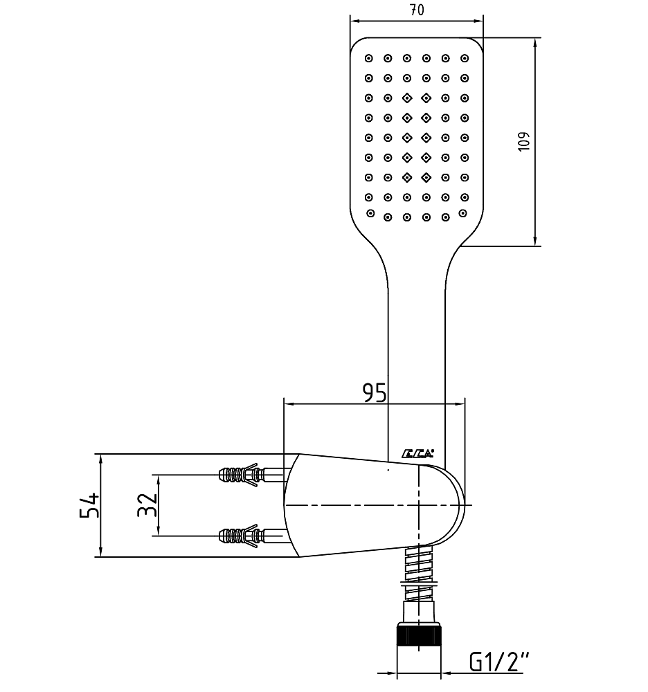 Размер ручного душа105 мм