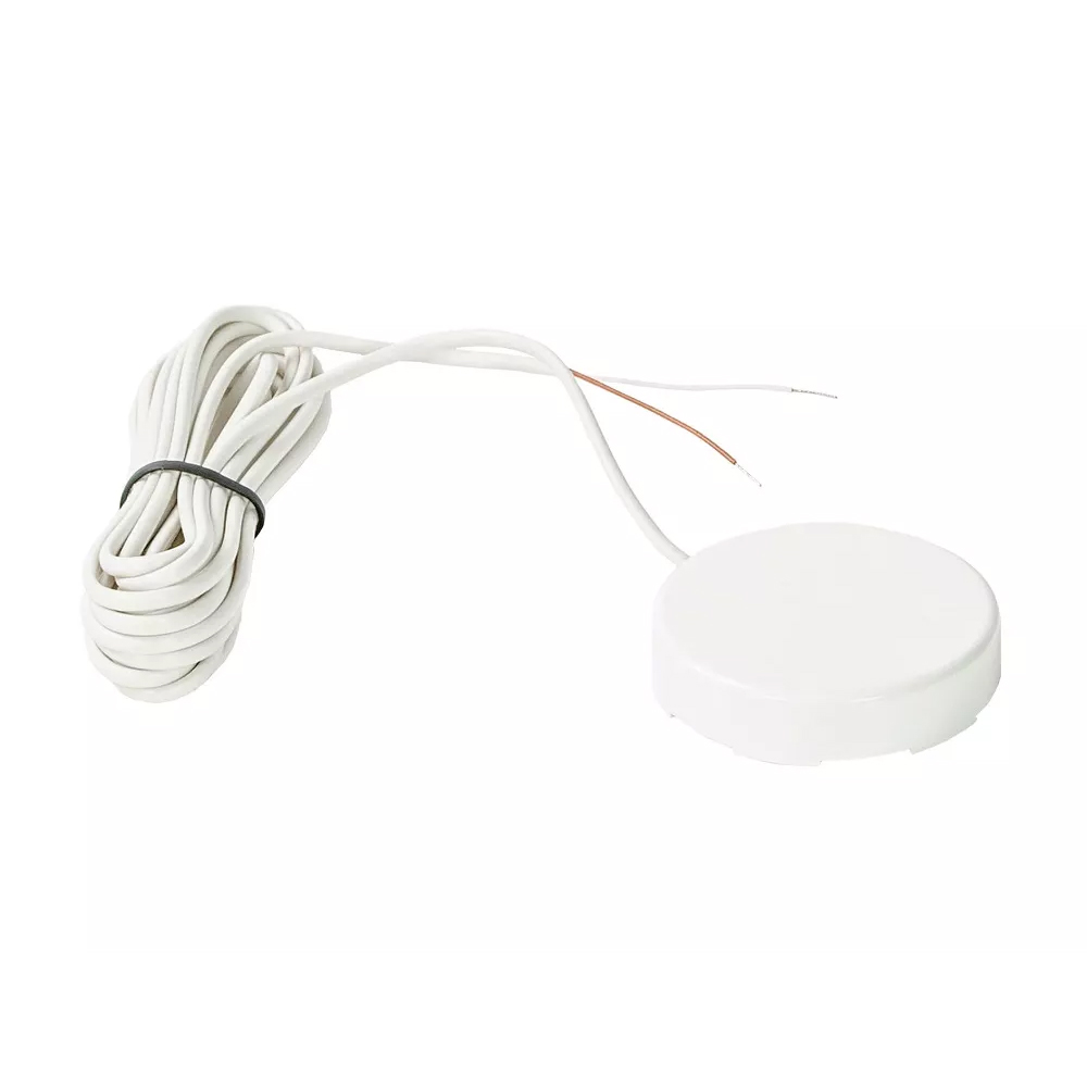 Пассивный датчик протечки воды WSP2+ предназначен для обнаружения аварийной ситуации при попадании влаги на его контакты. Контакты датчика имеют специальное антикоррозийное покрытие. Датчики протечки воды WSP2+ устанавливаются в возможных местах протечки. Благодаря небольшим размерам (высота датчика всего 8 мм), датчики протечки воды можно разместить в любых труднодоступных местах. Форма датчика круглая. Датчик WSP2+ оснащен дополнительным сопротивлением, позволяющим определить обрыв линии при подключении к блоку управления Premium. Контроль обрыва линии осуществляется ТОЛЬКО при установке не более чем одного датчика в линии. Для увеличения длины соединительного кабеля датчика протечки воды можно использовать следующие марки кабелей: FTP 2x2x0,35 и ШТЛП 4.