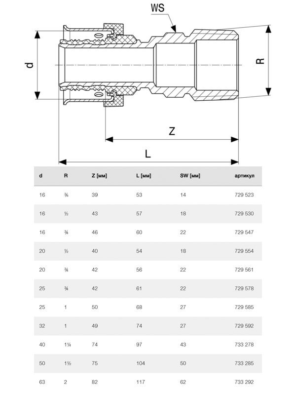 • Тип фитинга Переходник