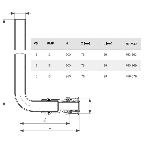 Уголок Viega SmartPress для радиатора медный 16 x 15 x 200 мм, модель 6776