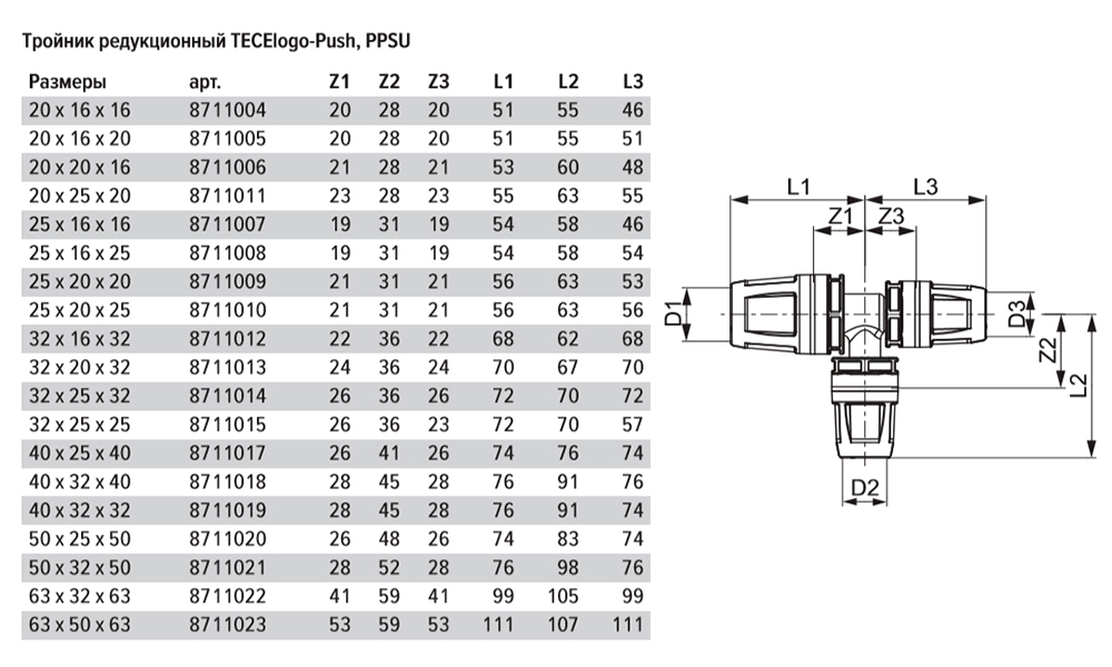 • Диаметр соединения 63 x 32 x 63