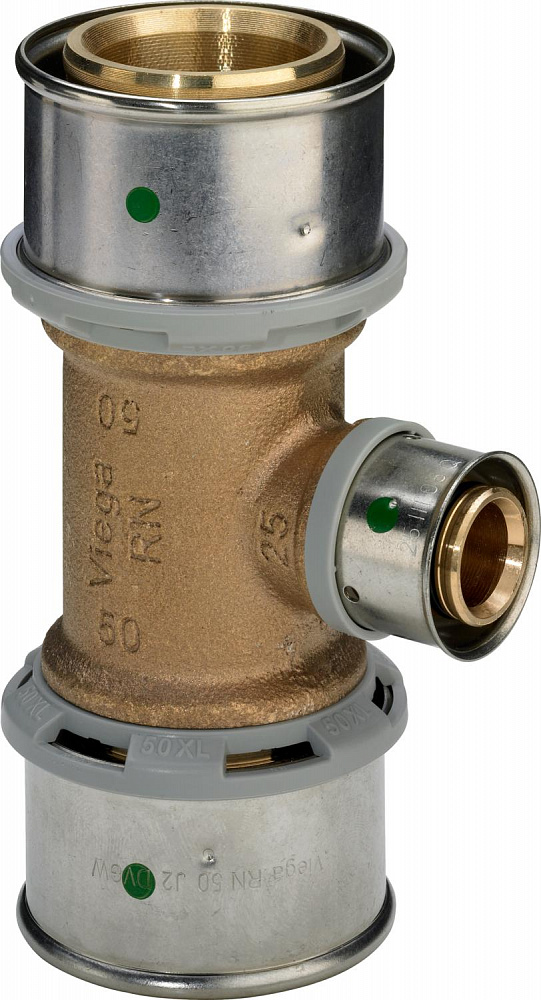 Пресс-система с пресс-фитингами из бронзы и многослойными трубами. Многослойная труба, стабильная по форме, с антидиффузионной защитой, цвет: белый. Пресс-фитинг с пресс-гильзами из нержавеющей стали для обеспечения гарантированной герметичности и механической прочности соединения. Для защиты трубы оснащены заглушками. Подходит для открытого и скрытого монтажа стояков и поэтажной разводки.