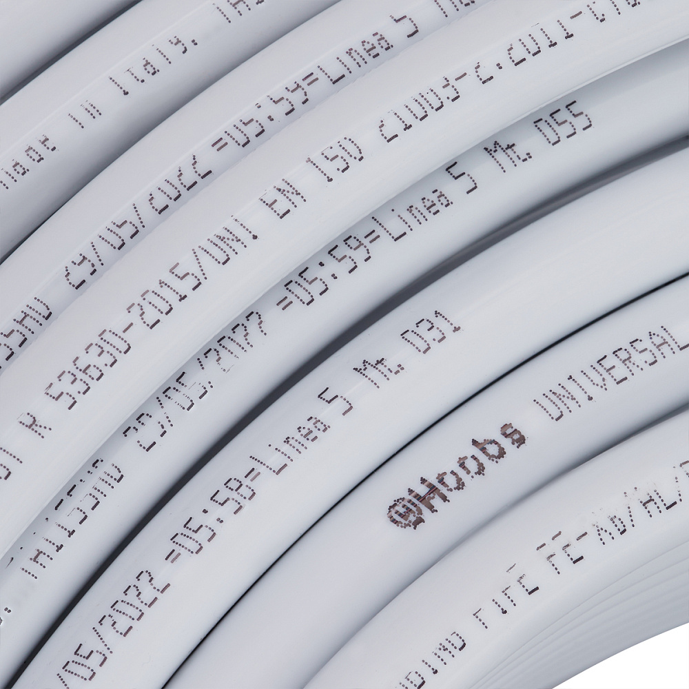 Трубы металлополимерные из сшитого полиэтилена Hoobs PE Xb/Al/PE-Xb с алюминиевым барьерным слоем предназначены для всех классов эксплуатации. Трубопроводная система из труб монтируется с применением фитингов Hoobs.