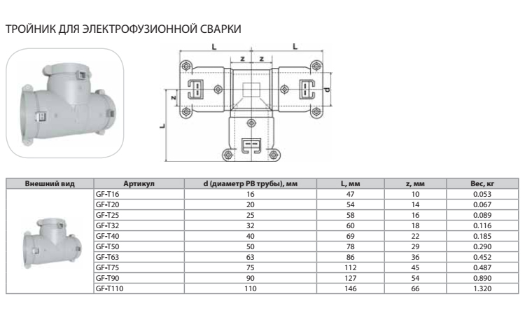 Тройник Thermaflex для электрофузионной сварки GF-T25
