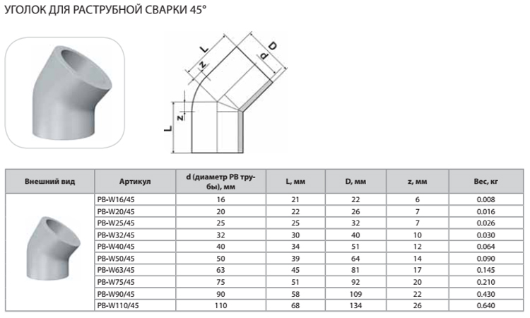 Уголок Thermaflex 45гр. для раструбной сварки PB-W20/45