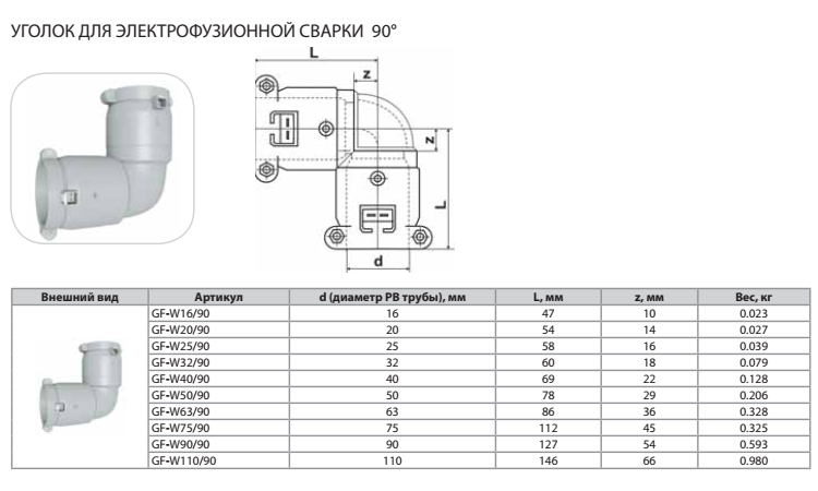 Уголок Thermaflex 90гр. для электрофузионной сварки GF-W75/90