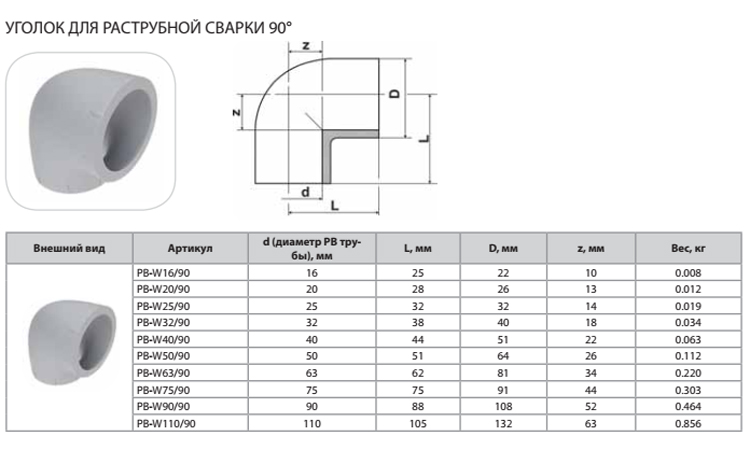 Уголок Thermaflex 90гр. для раструбной сварки PB-W20/90