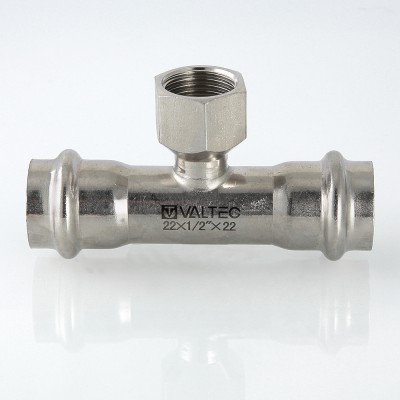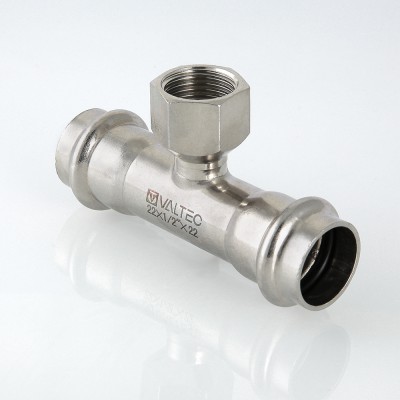 Пресс-тройник из нержавеющей стали с внутренней резьбой предназначен для соединения тонкостенных стальных труб с резьбовым элементом системы водоснабжения, отопления, других инженерных и технологических установок. Фитинг рассчитан на эксплуатацию при максимальной рабочей температуре 120oС. Номинальное давление – 16 бар.