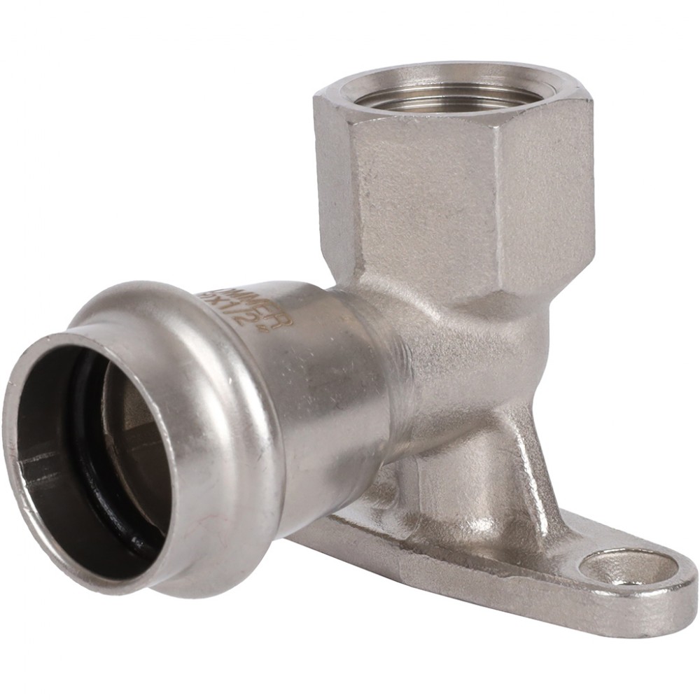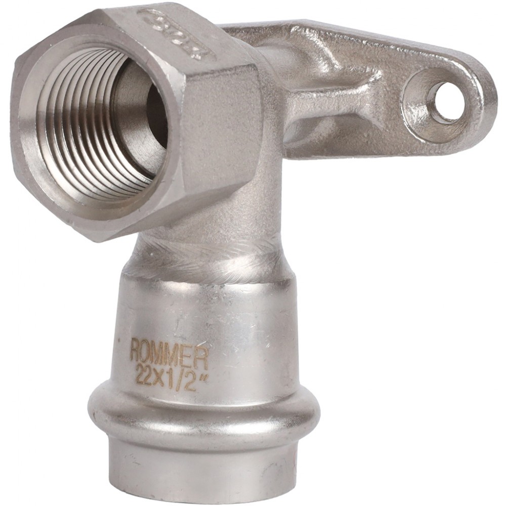 Угольник настенный Rommer с креплением 22х1/2 ВПр-ВР, нержавеющая сталь