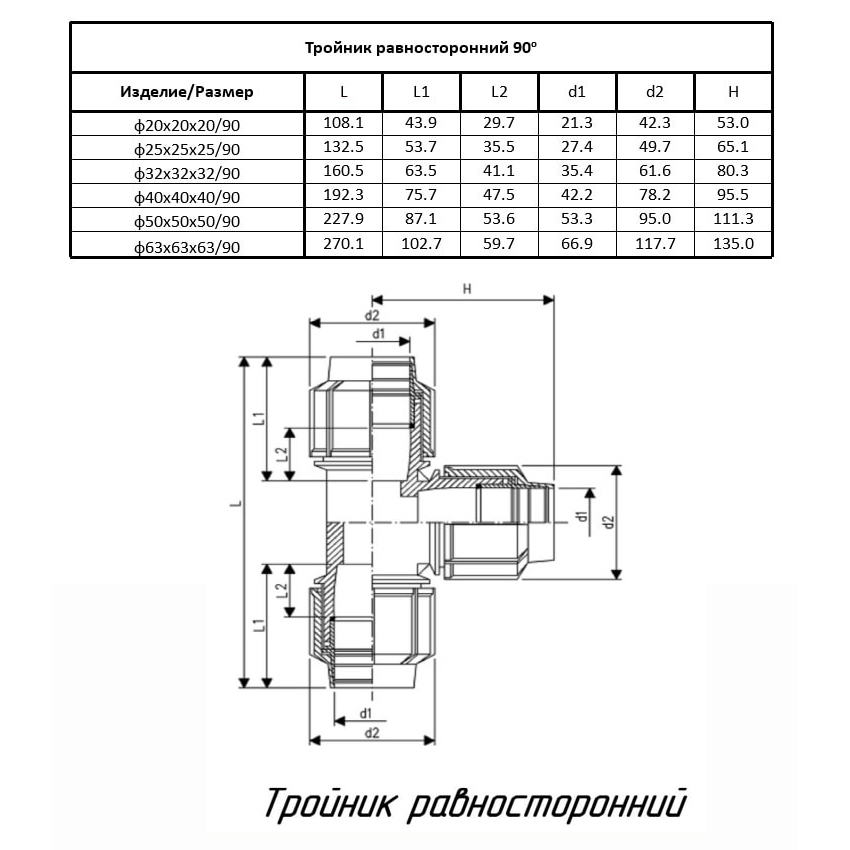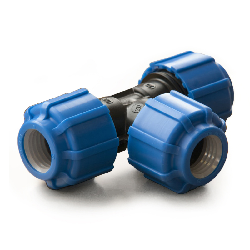Тройник компрессионный является деталью трубопровода для устройства разветвления полиэтиленовых ПНД труб равного диаметра.