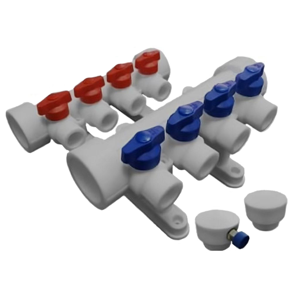 Основными конструктивными элементами распределительных гребёнок для систем радиаторного отопления являются подающий и возвратный коллекторы. Первый позволяет регулировать подачу теплоносителя, второй - обеспечивает пропорциональный обогрев помещений за счёт поддержания баланса давления в отдельных ответвлениях системы.