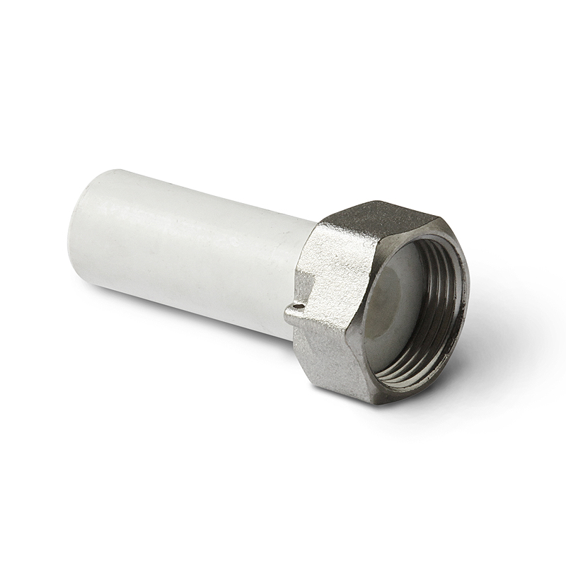 Штуцер из полипропилена PRO AQUA PP-R накидная гайкой для водосчетчика белый (25-1), арт.PA73010