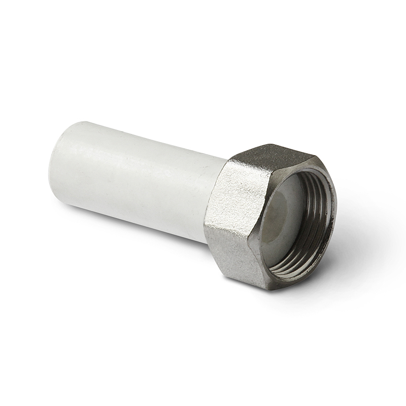 Штуцер из полипропилена PRO AQUA PP-R с накидной гайкой белый (32-1.1/4), арт.PA70016